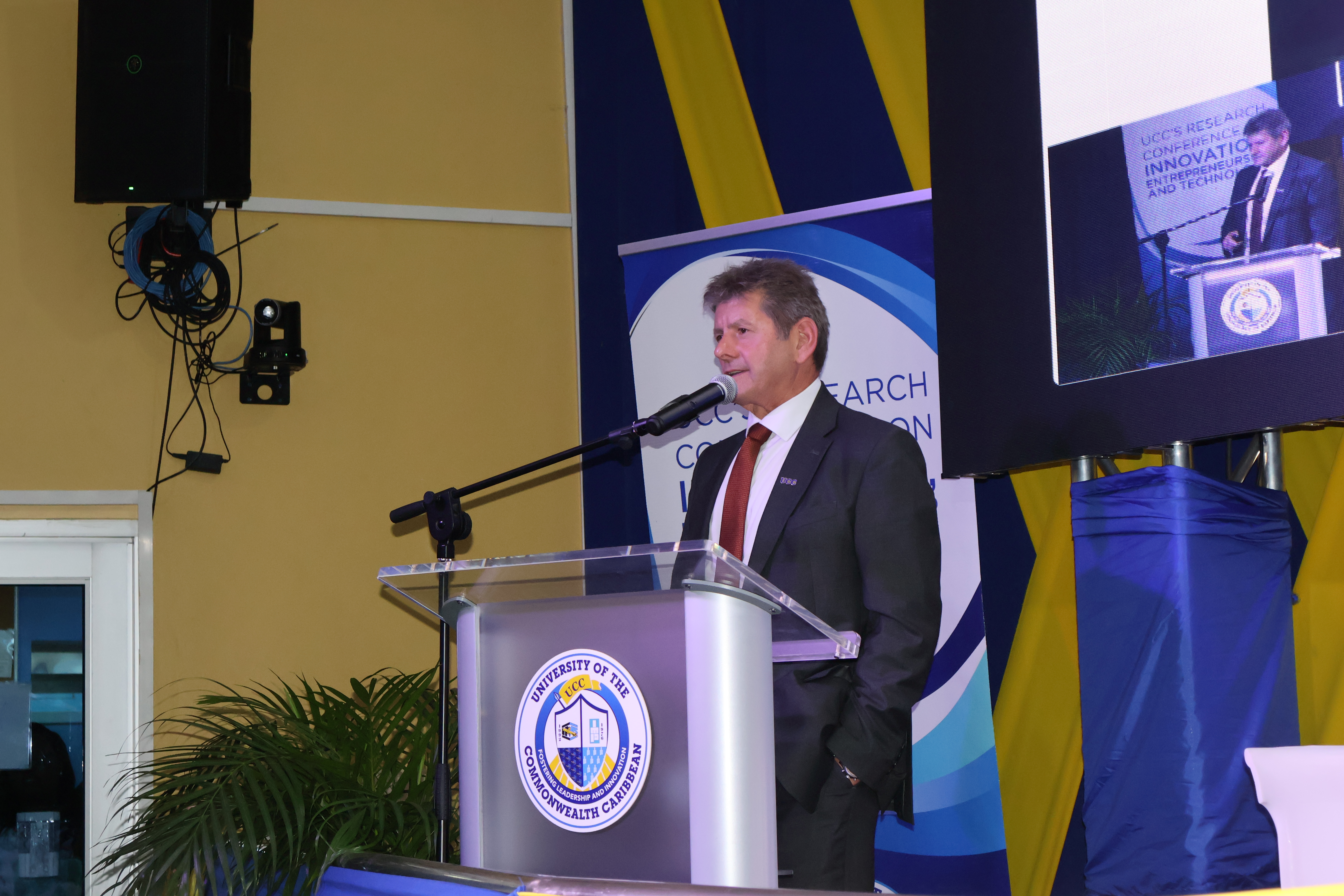 Kingston, Jamaica – Thursday, September 25, 2025 - The University of the Commonwealth Caribbean (UCC) opened its 9th Annual Research Conference at its main campus in Kingston on Wednesday, September 24, 2025, with a compelling keynote address from the university Chancellor Professor John MacIntyre. Held under the theme ‘Living and Working with Artificial Intelligence’, Professor MacIntyre called on educators and institutions to embrace artificial intelligence (AI) as a transformative tool in teaching, learning, and research. The Chancellor, in his presentation, urged the academic community to shift from a mindset of policing AI to one of purposeful integration, equipping students with the skills to use the technology effectively in the real world.